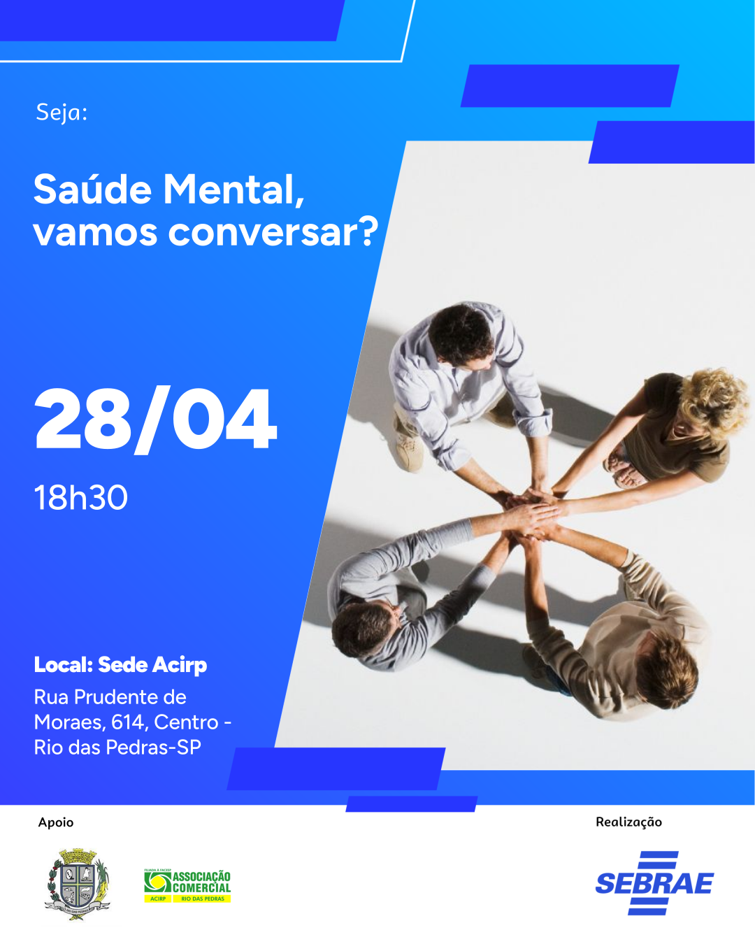 Local: ACIRP (Rua Prudente de Moraes, 614, Centro - Rio das Pedras/SP)
